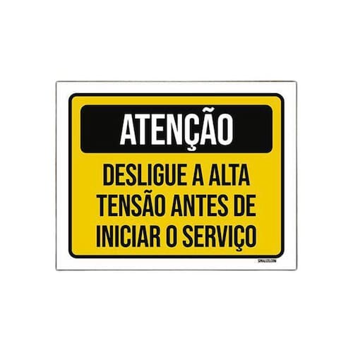 Placa De Sinalização - Atenção Desligue Alta Tensão 18X23
