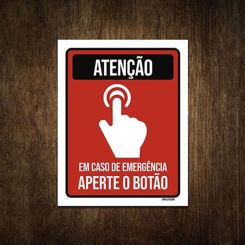 Placa De Sinalização - Atenção Emergência Aperte Botão 18X23