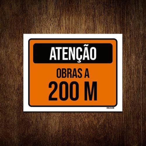 Placa De Sinalização - Atenção Obras A 200 Metros 36x46 NÃO PRECISA FURAR, NÃO EMPENA E NEM PERDE A COR NO SOL, PODE SER REBITADA E NÃO RASGA! - Informações do Produto: Placas decorativas fabricadas com poliestireno de alto impacto PSAI de 2mm e adesivo vinil automotivo de alta performance. - Medidas: 36cm x 46cm - Fixação: Todas as placas possuem adesivo dupla face para aplicação em qualquer tipo de superfície lisa. * de 12 meses e disponibilidade imediata. Marca: Sinalizo
