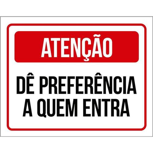 Placa De Sinalização - Atenção Preferência Quem Entra 36x46 - Informações do Produto: Placas decorativas fabricadas com poliestireno de alto impacto PSAI de 2mm e adesivo vinil automotivo de alta performance. - Medidas: 36cm x 46cm - Fixação: Todas as placas possuem adesivo dupla face para aplicação em qualquer tipo de superfície lisa. de 12 meses e disponibilidade imediata. Marca: Não Informado Ean: 7794723864003