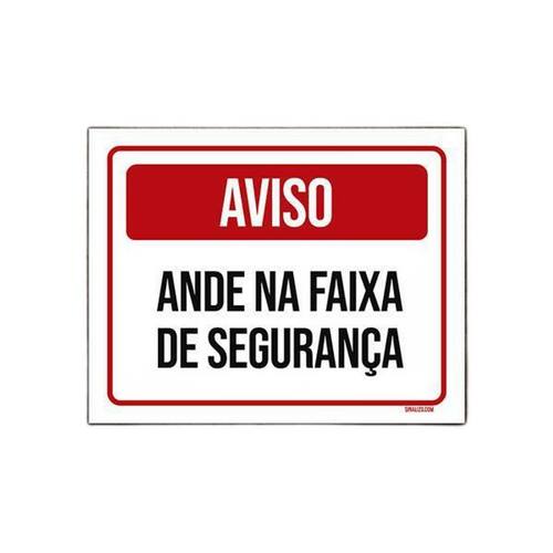 Placa De Sinalização Aviso Anda Na Faixa De Segurança 27X35
