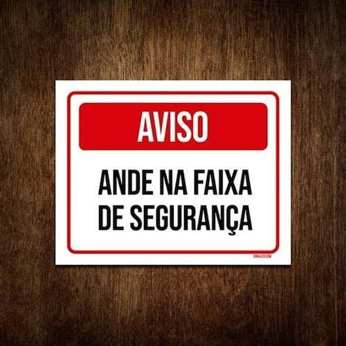 Placa De Sinalização Aviso Anda Na Faixa De Segurança 36x46
