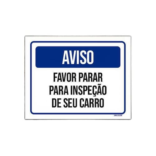 Placa De Sinalização - Aviso Favor Parar Inspeção 27X35