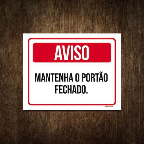Placa De Sinalização - Aviso Mantenha Portão Fechado 18X23