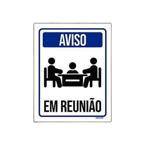 Placa de sinalização aviso sala em reunião 36x46 Não precisa furar, não empena e nem perde a cor no sol, pode ser rebitada e não rasga - informações do produto: Placas decorativas fabricadas com poliestireno de alto impacto psai de 2mm e adesivo vinil automotivo de alta performance. - medidas: 36cm x 46cm - fixação: Todas as placas possuem adesivo dupla face para aplicação em qualquer tipo de superfície lisa. de 12 meses e disponibilidade imediata. Marca: Sinalizo