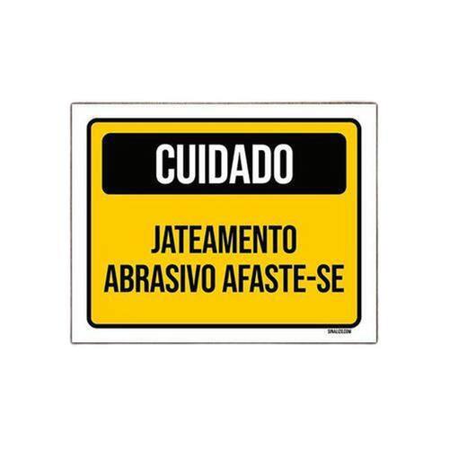Placa de sinalização - cuidado jateamento abrasivo 36x46 Não precisa furar, não empena e nem perde a cor no sol, pode ser rebitada e não rasga - informações do produto: Placas decorativas fabricadas com poliestireno de alto impacto psai de 2mm e adesivo vinil automotivo de alta performance. - medidas: 36cm x 46cm - fixação: Todas as placas possuem adesivo dupla face para aplicação em qualquer tipo de superfície lisa. de 12 meses e disponibilidade imediata.