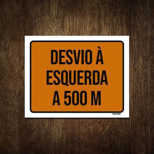 Placa De Sinalização - Desvio À Esquerda A 500 Metros 18X23