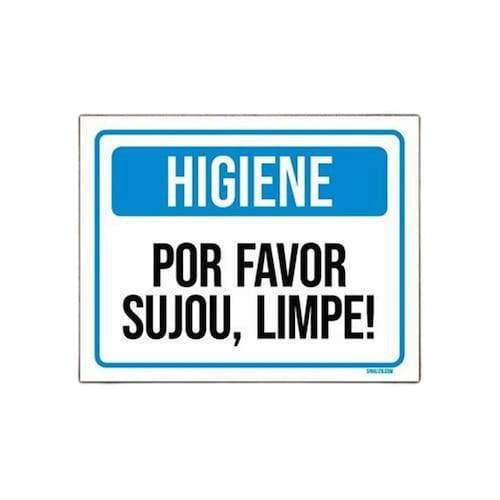 Placa de sinalização - higiene por favor sujou limpe 36x46