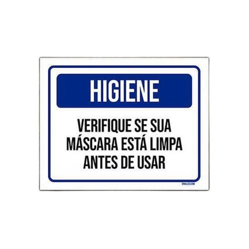 Placa De Sinalização - Higiene Verifique Máscara Limpa 36x46 NÃO PRECISA FURAR, NÃO EMPENA E NEM PERDE A COR NO SOL, PODE SER REBITADA E NÃO RASGA! - Informações do Produto: Placas decorativas fabricadas com poliestireno de alto impacto PSAI de 2mm e adesivo vinil automotivo de alta performance. - Medidas: 36cm x 46cm - Fixação: Todas as placas possuem adesivo dupla face para aplicação em qualquer tipo de superfície lisa. * de 12 meses e disponibilidade imediata. Marca: Não Informado