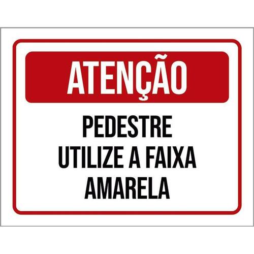 Placa De Sinalização - Pedestre Utilize Faixa Amarela 36x46 - Informações do Produto: Placas decorativas fabricadas com poliestireno de alto impacto PSAI de 2mm e adesivo vinil automotivo de alta performance. - Medidas: 36cm x 46cm - Fixação: Todas as placas possuem adesivo dupla face para aplicação em qualquer tipo de superfície lisa. de 12 meses e disponibilidade imediata. Marca: Não Informado Ean: 7794723553891