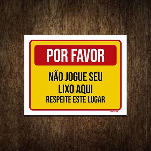 Placa De Sinalização - Por Favor Não Jogue Lixo 36X46
