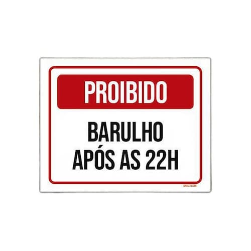 Placa De Sinalização - Proibido Barulho Após 22 Horas 18X23