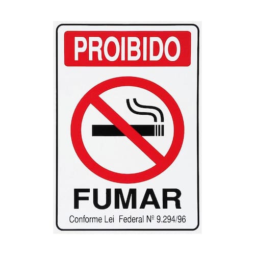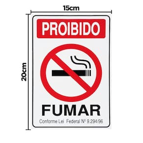 Placa De Sinalização Proibido Fumar 15x20 - P-5/1 F9e Detalhes Deixe o seu ambiente mais organizado garantindo mais produtividade e segurança com as placas de identificação e sinalização de locais. As placas de sinalização de locais são confeccionadas em Plástico PS com 20cm de altura e 15cm de largura. Contém apenas 1 unidade de placa com a escrita Proibido Fumar, Conforme Lei Federal Nº 9.294/96. Informações técnicas: Código: P-5/1 Marca: Acesso Peso Kg : 0,020 Material: Plástico Dimensões do produto: Altura: 20cm X Largura: 15cm X Profundidade: 0,16cm Dimensões da embalagem: Altura: 24cm X Largura: 15cm X Profundidade: 0,16cm Código Universal: 7898414400065 Ncm: 39031900