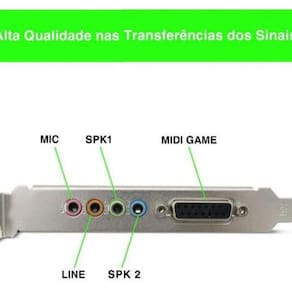 ESPECIFICAÇÕES: Placa de Áudio com 4 Canais Portas: Mic Line In SPK1 SPK2 e MIDI GAME Alta Qualidade nas Transferências dos Sinais Interface PCI Ideal para Reposição Acompanha CD de Instalação Compatibilidade: Windows 95 98 2000 XP Vista Windows NT e Linux Vista
