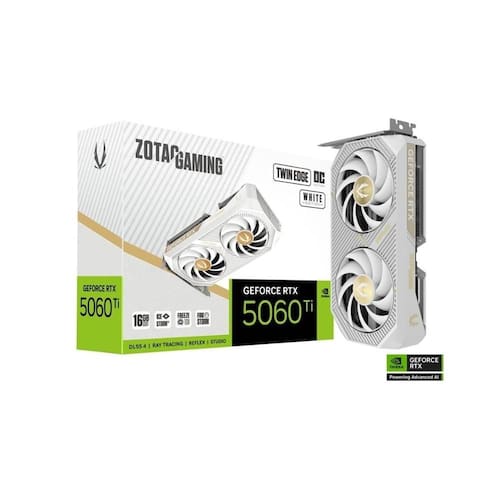 A ZOTAC GAMING GeForce RTX 5060 Ti 16GB Twin Edge OC White Edition é uma placa de vídeo compacta equipada com a arquitetura Blackwell de ponta da NVIDIA, DLSS4 e 16GB de memória GDDR7. Com um overclock de fábrica e uma solução de resfriamento sólida, a Twin Edge OC White Edition está pronta para encarar os lançamentos mais recentes com taxas de quadros e desempenho suaves. ESPECIFICAÇÕES TÉCNICAS Características: Marca: Zotac