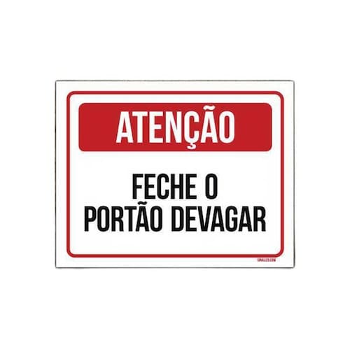 A placa de atenção Feche o Portão Devagar é a escolha ideal para quem busca aumentar a segurança do ambiente de forma simples e eficiente. Garanta já a sua! Marca: Sinalizo.Com Ean: 7896359969760