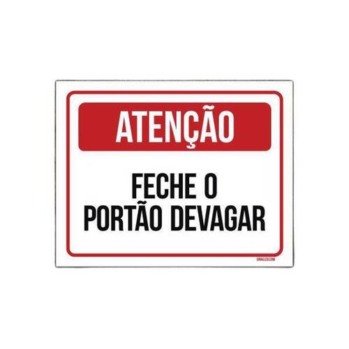 A placa de atenção Feche o Portão Devagar é a escolha ideal para quem busca aumentar a segurança do ambiente de forma simples e eficiente. Garanta já a sua! Marca: Sinalizo.Com