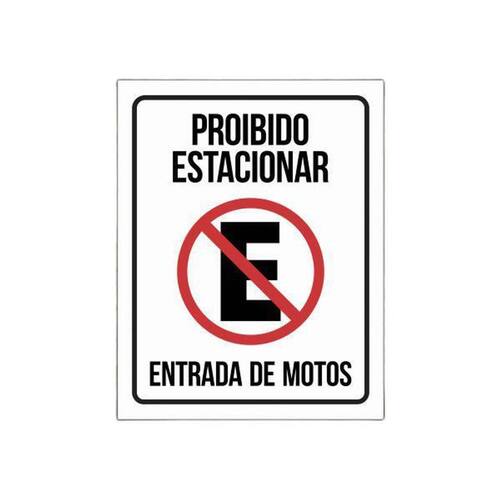 - Qual é o tamanho da placa? A Placa Proibido Estacionar Entrada De Motos Sinalização possui medidas de 18cm x 23cm, sendo compacta e fácil de ser visualizada.
