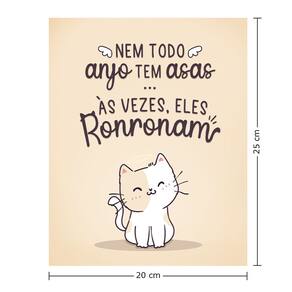 Detalhes do Produto: - Material: MDF 3 mm - Tamanho: 20 cm x 25 cm - Peso Líquido: 134 gramas - Frase: "Nem Todos Anjo tem Asas... às Vezes, Eles Ronronam" - Conteúdo da Embalagem: 1 placa decorativa com fita dupla face