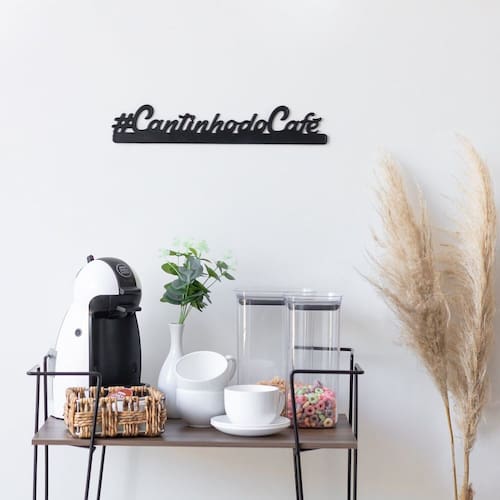 Placa de Parede Aramado Cantinho do Café para dar um charme à sala de estar, cozinha, escritório ou outros espaços dedicados ao preparo e consumo de café. Harmonizando bem em projetos tanto clássicos quanto elegantes Acabamento: Pintura Ambiente Principal: Sala de Estar Cor: Preto Cor do Produto: Preto Escala de Brilho: Fosco Itens Inclusos: 1 gancho e manual de montagem Manual de Montagem e Instalação: https://product-hub-prd.madeiramadeira.com.br/938947/documents/fcca593d-b80a-48a5-8598-071c0f1b556c2308562547817258834450723.pdf Material Principal: Aço Necessita Montagem: Não Peso: 0,2 kg Recomendações de Uso, Manutenção e Limpeza: Recomendável instalação em parede de alvenaria. Para limpeza, utilize sabão ou detergente neutro e esponja macia. Nunca use solventes, objetos cortantes ou abrasivos.