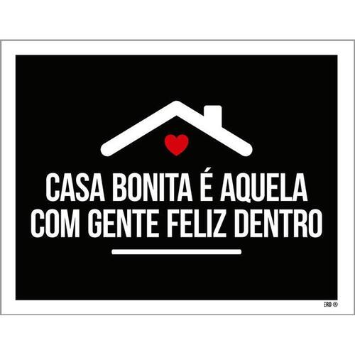 Placa Decorativa Casa Bonita Aqui Gente Feliz Dentro 36X46