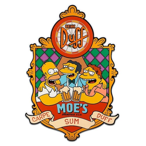 Placa Decorativa Simpsons Duff com recorte eletrônico perfeito, são excelentes para decorar ambientes externos e internos como salas, área goumert ou outros.