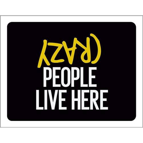 Placa Decorativa Crazy People Live Here 36x46 Informações do Produto: Placas decorativas fabricadas com poliestireno de alto impacto PSAI de 2mm e impressão ultravioleta. - Medidas: 36cm x 46cm - Fixação: Todas as placas possuem adesivo dupla face para aplicação em qualquer tipo de superfície lisa. de 12 meses e disponibilidade imediata. Marca: Não Informado