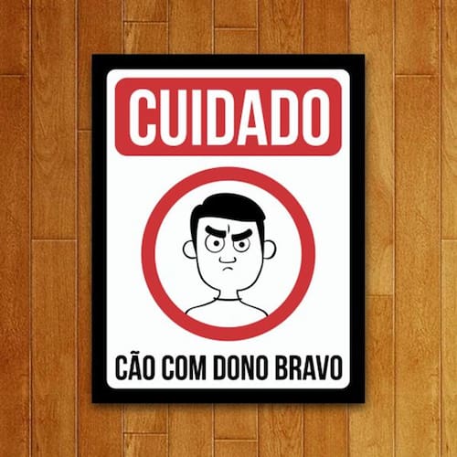 Placa Decorativa - Cuidado Cão Com Dono Bravo