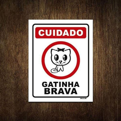 Placa Decorativa - Cuidado Gatinha Brava Gata 27X35