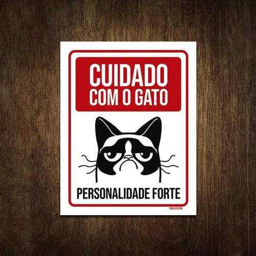 Placa Decorativa - Cuidado Gato Personalidade Forte 27X35