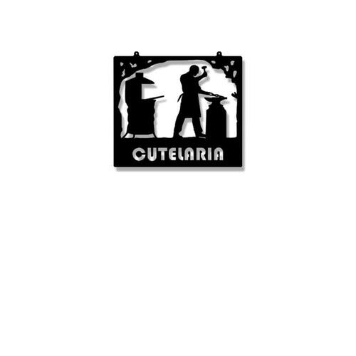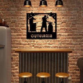Especificações Técnicas: Medidas: comprimento: 30 cm altura: 3mm largura: 26 cm Material: mdf 3mm Cor: preto Tema: cutelaria Formas de instalação: basta utilizar fitas dupla face Quantidade: 1 unidade