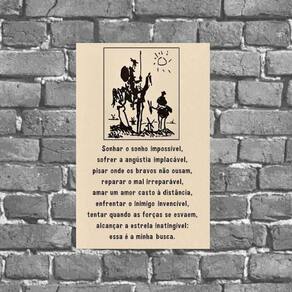 Placa decorativa dom quixote sonhar 18x27cm Informações do produto tire todas as suas dúvidas no descritivo abaixo: placas decorativas são tendência e uma excelente ideia para decorar ambientes de forma econômica e bonita, elas são leves e extremamente fáceis de instalar; além de servir para a decoração de qualquer ambiente, indo desde estabelecimentos como barbearias e bares, até quartos, sala, área de lazer, churrasqueira, etc. Ou ainda, e por que não, poder quebrar aquele galho tampando imperfeições indesejadas da parede com um toque especial medidas - cada peça tem 18x27cm. Material do papel - papel fotográfico brilhante de altíssima resolução - de 3 meses. Marca: Não Informado