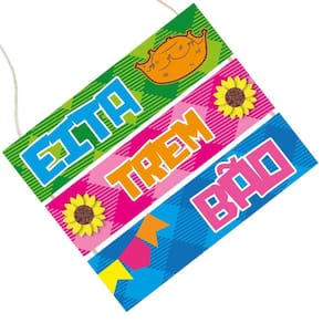 Placa Decorativa - Eita Trem Bão Deixe sua Festa Junina ainda mais animada com essa linda placa decorativa Com cores vibrantes e elementos típicos, ela traz toda a alegria e tradição dessa celebração tão especial. A placa é composta por três partes coloridas, cada uma com uma palavra estampada: EITA no fundo verde, acompanhado de um chapéu de palha. TREM no fundo rosa, decorado com girassóis. BÃO no fundo azul, com bandeirinhas festivas. Além do design encantador, o item conta com um cordão para pendurar, facilitando a decoração do ambiente. Informações do produto: Material: MDF/EVA Ideal para: Decoração de festas juninas, arraiais e ambientes temáticos Destaques: Cores vibrantes, elementos decorativos em relevo e fácil instalação Largura: 24 Comprimento: 20 Dê um toque especial ao seu evento e encante seus convidados com essa peça cheia de charme e tradição Marca: Grinfest