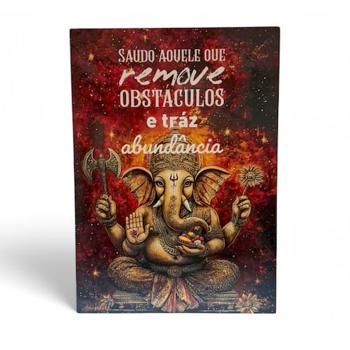 Linda peça, rica em detalhes, cheia de significados e perfeita para seu ambiente. Em termos gerais, Ganesha é uma divindade muito amada e frequentemente invocada, já que é o "Deus da Boa Fortuna" que proporciona prosperidade e fortuna é também o "Destruidor de Obstáculos" de ordem material ou espiritual. É por este motivo que sua graça costuma ser invocada pelos seus devotos antes de eles iniciarem qualquer tarefa.