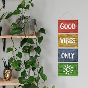 Placa decorativa mdf corda p pendurar frase good vibes only