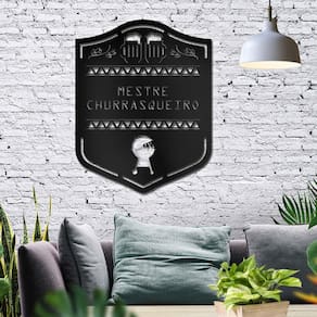 Especificações Técnicas: Medidas: comprimento: 30 cm altura: 3mm largura: 40 cm Material: mdf 3mm Cor: preto Tema: churrasco Formas de instalação: basta utilizar fitas dupla face Quantidade: 1 unidade