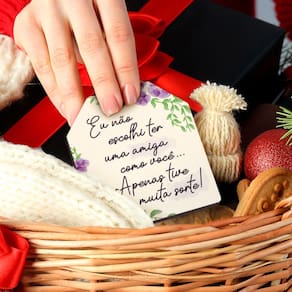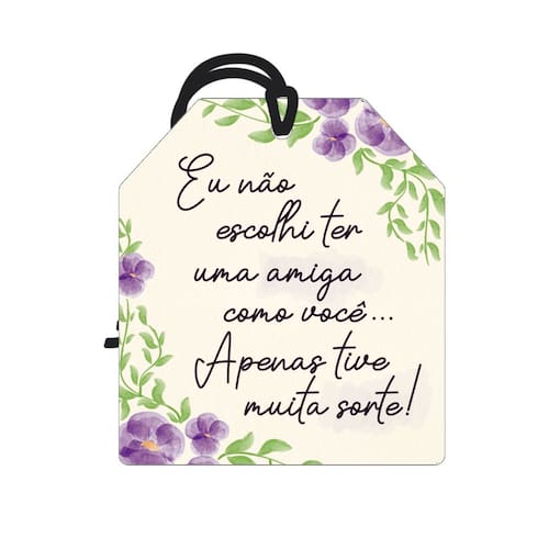 Detalhes do Produto: - Marca: Estúdio Amora - Tamanho: 8 cm x 9 cm - Peso Líquido: 18 gramas - Material: MDF 3 mm e corda de camurça - Impressão: Digital U.V. de Alta Qualidade - Frase: "Eu não escolhi ter uma amiga como você... Apenas tive muita sorte!"