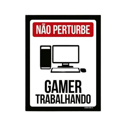 Placa Decorativa Não Perturbe: Gamer Trabalhando - Pc