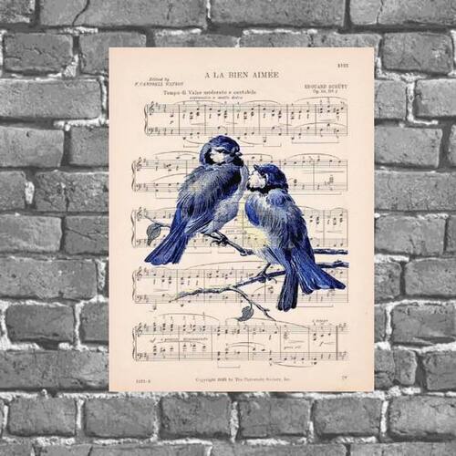 Placa Decorativa Passarinhos Azuis 18x27cm
