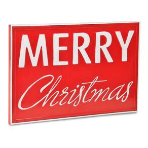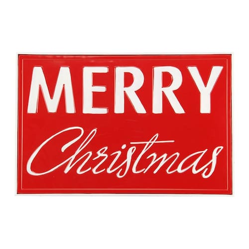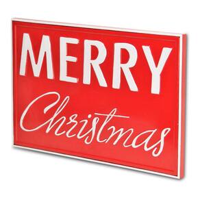 Feito de metal Cheungs Merry Christmas com fundo vermelho, borda branca e letreiro de parede com letras