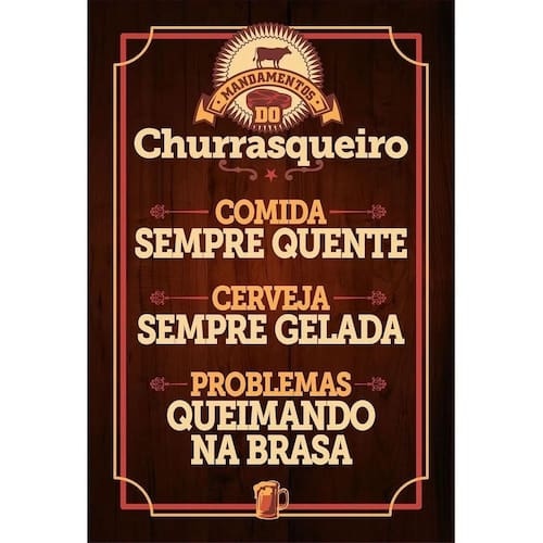 Placa Decorativa Quadro Regras Do Churrasco V539 Linda placa decorativa para sua área de lazer, deixe seu ambiente mais aconchegante e divertido com essa linda decoração. Material: Placa de MDF com 3mm de espessura, corte a laser, impressão feita em vinil com acabamento fosco. Medida: 20x30cm Assim que enviado, será informado dentro da sua compra o rastreio para seu acompanhamento. A placa já vai com fita dupla face, basta retirar e aplicar na parede, não é necessário furar.