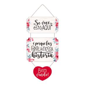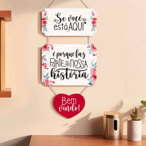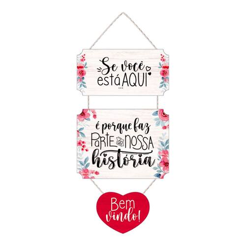 Detalhes do Produto: - Material: MDF 6 mm - Marca: Estúdio Amora - Peso Líquido: 300 gramas - Tamanho: 20 cm x 50 cm - Acabamento: Corda de Algodão - Impressão: Digital U.V. de Alta Qualidade - Conteúdo da Embalagem: 1 Placa Decorativa com Corda - Frase: Se você está aqui é porque faz parte da nossa história! Bem vindo!
