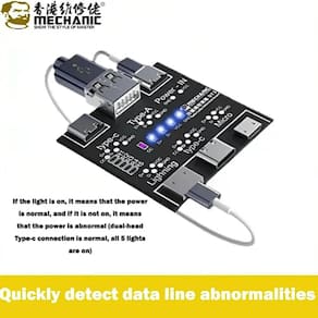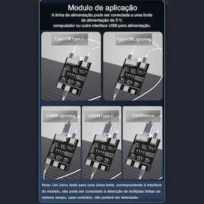 Placa para teste de cabos de dados e carregamento de celular. Permite identificar rapidamente falhas em cabos USB, garantindo diagnósticos precisos. Compatível com diversos tipos de conexão (USB Type-A, Type-C, Lightning e Micro USB). Realiza diagnóstico rápido de conexões D+, D-, VCC e outros sinais. Design compacto para facilidade de uso. Ideal para profissionais de assistência técnica e reparos. Material robusto para durabilidade e confiabilidade.Vendido e entregue por Olist Store