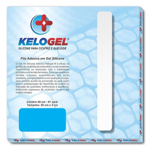 Indicação: o gel de silicone adesivo kelogel é eficaz no gerenciamento de cicatrizes, cicatrizes hipertróficas ou queloides com o tratamento profilático em feridas fechadas. Deve ser usada em feridas, traumas, queimaduras, pós-parto cesárea , cirurgia plástica ou em qualquer cirurgia, esse produto auxilia na prevenção ou para quem possui predisposição de hipertrofia de cicatriz ou formação de queloides, melhorando a aparência, diminuindo espessura de cicatrizes novas e até mesmo antigas.
