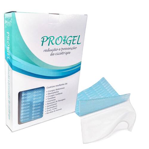 Placa em gel de silicone, 100% grau médico, adesiva, reforçada por uma película também de silicone, macia e semi-oclusiva.