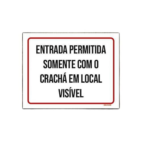 Placa Entrada Permitida Somente Com Crachá Visível 36X46