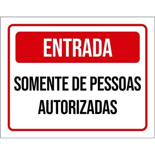 Placa Entrada Somente Pessoas Autorizadas Vermelha 36x46
