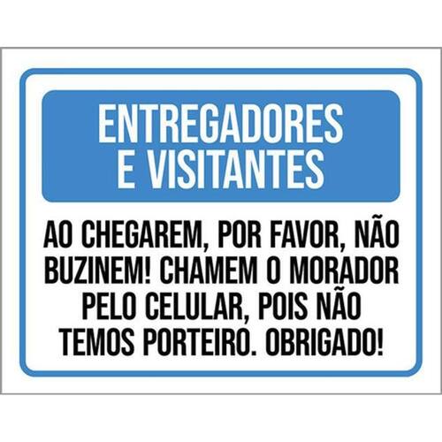 Placa Entregadores Visitantes Não Buzinem Chamem 36x46 Placas de sinalizaço fabricadas com poliestireno de alto impacto PSAI de 2mm e impressão ultravioleta.