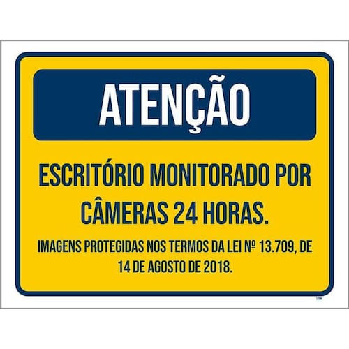 Placa Escritório Monitorada Câmeras 24 Horas 36x46 - Informações do Produto: Placas decorativas fabricadas com poliestireno de alto impacto PSAI de 2mm e adesivo vinil automotivo de alta performance. - Medidas: 36cm x 46cm - Fixação: Todas as placas possuem adesivo dupla face para aplicação em qualquer tipo de superfície lisa. de 12 meses e disponibilidade imediata. Marca: Não Informado Ean: 7794724255503