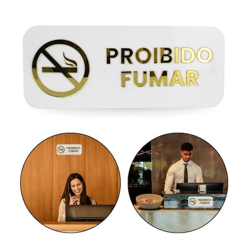 A placa Proibido Fumar em acrílico é ideal para sinalizar áreas onde o fumo é proibido, promovendo saúde e segurança para todos. Produzida em acrílico resistente, possui acabamento sofisticado com letras douradas em alto relevo, tornando-a bastante visível e adequada para ambientes profissionais como escritórios, consultórios, hotéis e áreas comuns. Além de funcional, seu design moderno contribui para a estética do ambiente. Possui duas pequenas tiras de fita dupla face no verso, o que a torna fácil de instalar. Um item essencial para quem busca sinalizar proibição do fumo em determinadas áreas sem abrir mão do visual sofisticado e moderno.